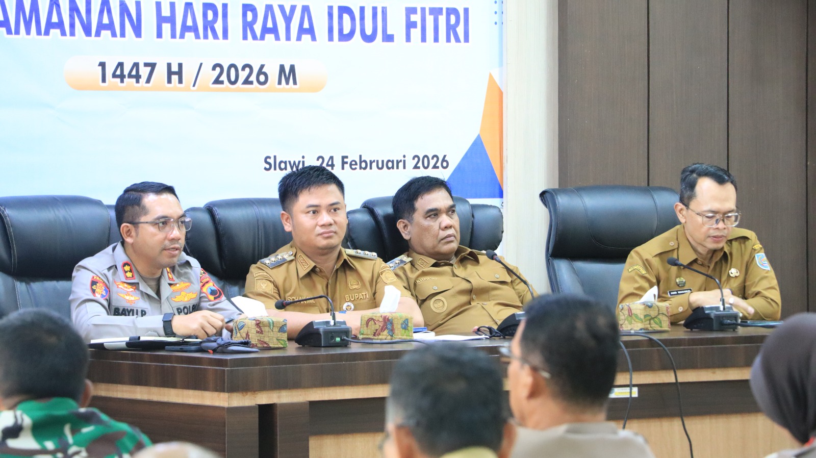 PANTURAINSIDE.COM, SLAWI – Rapat koordinasi lintas sektoral pengamanan Hari Raya Idul Fitri 1447 H/2026 M digelar di Ruang Rapat Bupati Tegal, Selasa (24 Februari 2026). Kegiatan ini diikuti unsur Forkopimda, instansi vertikal, OPD, serta stakeholder terkait guna memastikan kesiapan pengamanan, pelayanan, dan kelancaran arus mudik maupun arus balik.
