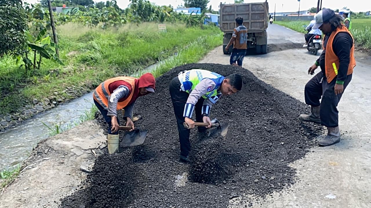 Slawi – Dalam rangka meningkatkan keselamatan pengguna jalan serta memberikan rasa aman dan nyaman bagi masyarakat, Satuan Lalu Lintas Polres Tegal melaksanakan kegiatan penambalan jalan berlubang di jalur alternatif Jatibarang – Balapulang, tepatnya di Desa Semboja, Kecamatan Pagerbarang, Kabupaten Tegal, Kamis (12/3/2026).